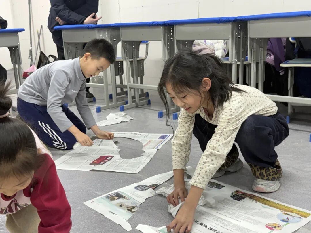 针对二年级学生身心特点,活动设计抓尾巴、智慧穿越等趣味项目。“抓尾巴”游戏中,同学们灵活躲闪、快速出击,锻炼了身体灵活性与反应力;“智慧穿越”环节,大家巧用旧报纸创新通关方式,培养了协作与解决问题的能力;队员们互帮互助,充分展现团队意识与集体荣誉感,在欢声笑语中体会团结力量。